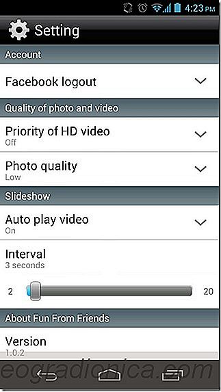 Social networking gigant, Facebook, je o sdílení. Ať už jsou vaše myšlenky na konkrétní téma, podrobnosti o nadcházející události, fotky nového skateboardu, videa z místního fotbalového utkání nebo přání narozenin, oblíbená služba online vám umožní sdílet vše s maximální lehkostí. Uprostřed moře sdíleného obsahu se může stát velmi náročné projít a těšit se na příspěvky, které chcete vidět na vaší stěně ve Facebooku. Co je více nepříjemné, je, že i oficiální mobilní aplikace Facebooku v tomto ohledu nepomáhá. Zadejte zábava z přátel (nebo FFF), bezplatná aplikace pro Android, která se zaměřuje výhradně na prezentaci fotografií a videí z Wall Street ve skvělém stylu. Aplikace je dodávána s nativním přehrávačem videa, správcem záložek obrázkových galerií a umožňuje vám si vychutnávat prezentace obrázků, které byly z vašeho zdi vytrženy. Navíc FFF podporuje streamování videa ve vysokém rozlišení a umožňuje určit požadovanou kvalitu obrazu.